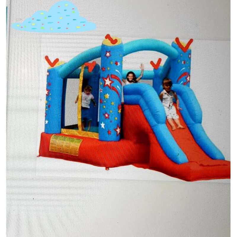 Kleine Hüpfburg für Ihren Kindergeburtstag. Mit den Maßen L 2,5m x B 2,5m x H 3m ist sie geeignet für kleine Gärten und Parkplätzen.